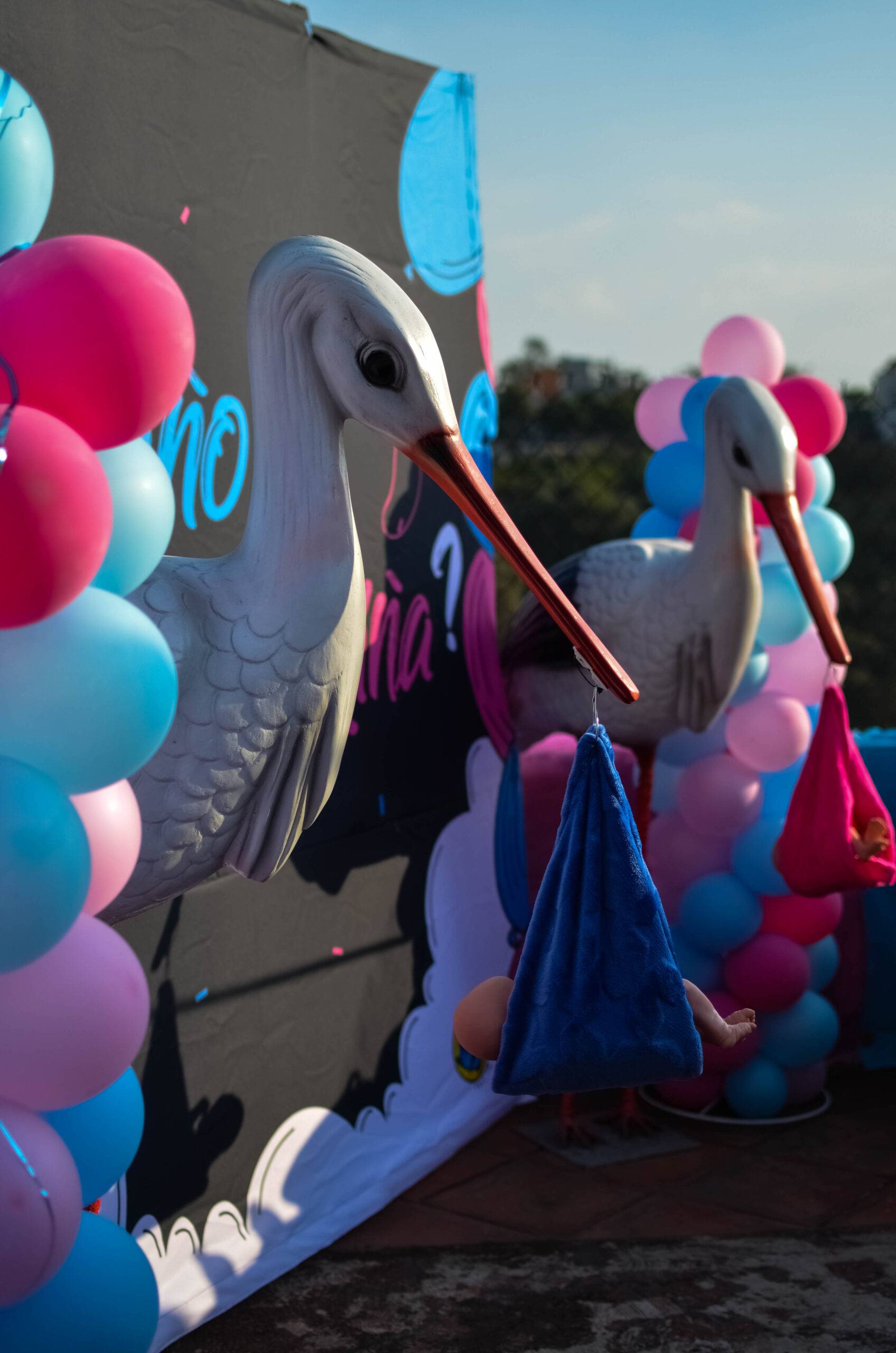 Las cigüeñas decorativas para revelación de género son un elemento clásico, emotivo y altamente visual, perfecto para anunciar la llegada de un nuevo integrante de la familia.