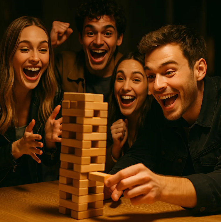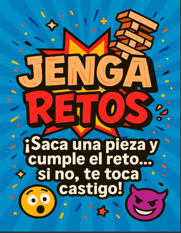 Este juego de retos y preguntas tipo Jenga transforma el clásico juego de bloques en una dinámica social divertida, inesperada y altamente participativa.