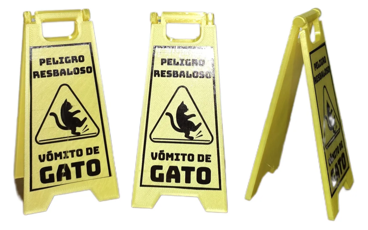 Fabricado en PLA mediante impresión 3D, este señalamiento es ligero, resistente y autoportante, listo para colocarse sobre cualquier superficie interior sin necesidad de soportes adicionales. Su tamaño compacto lo hace perfecto para decorar sin estorbar, pero lo suficientemente visible para provocar risas inmediatas.